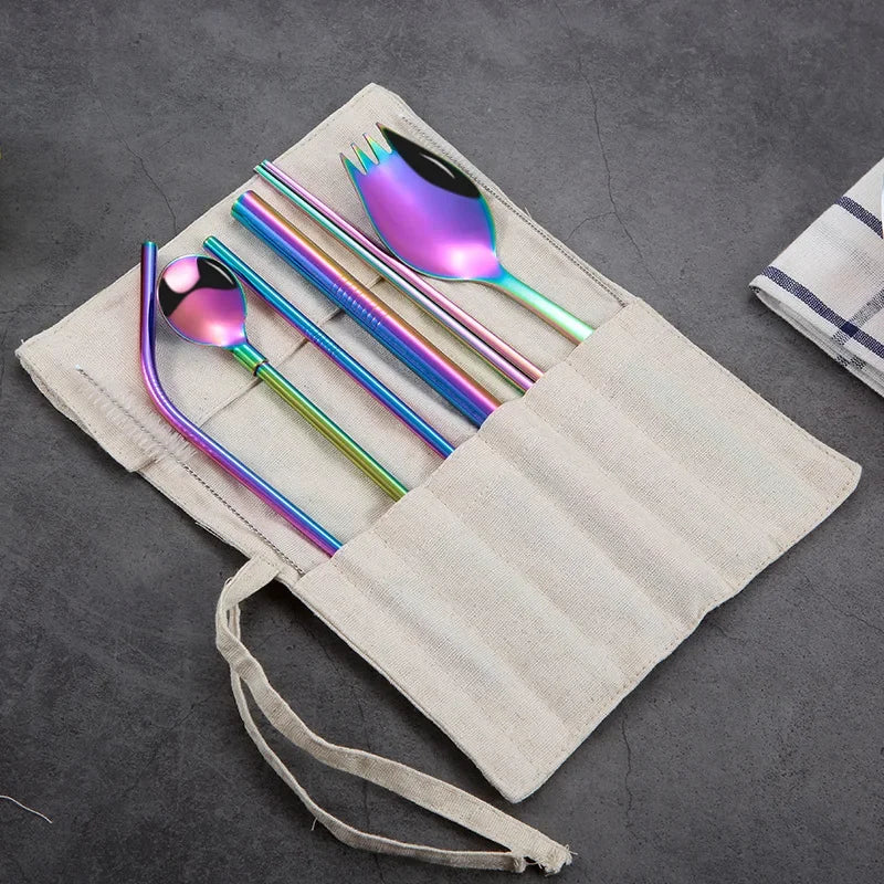 9-Piece 304 Stainless Steel Straw Set with Spoon Fork Chopstick