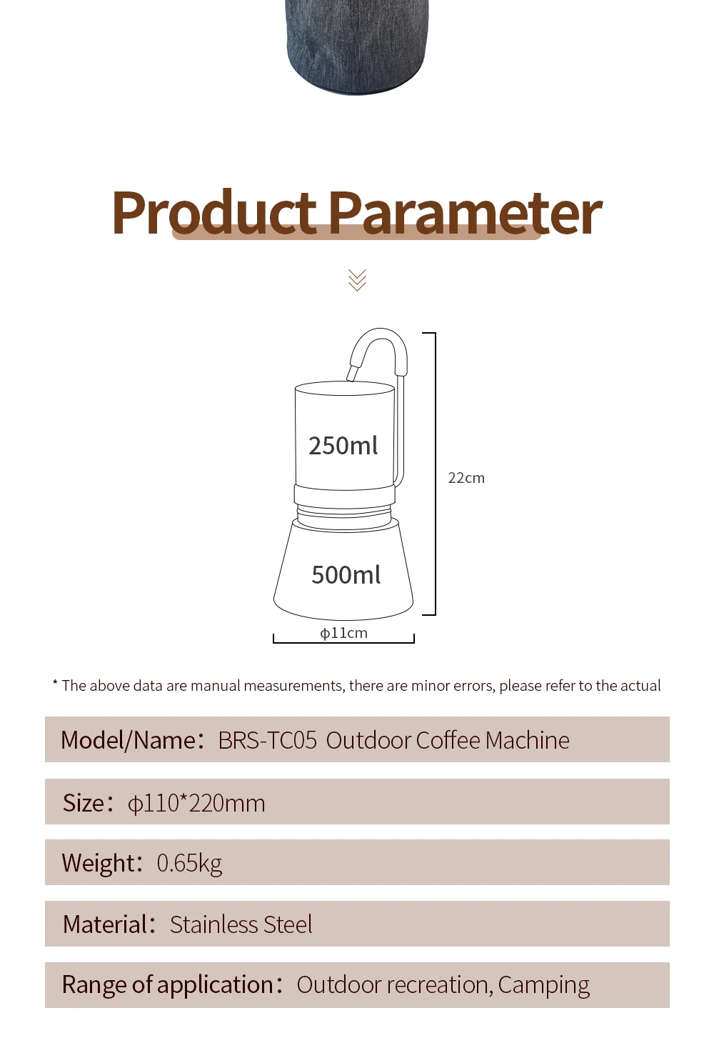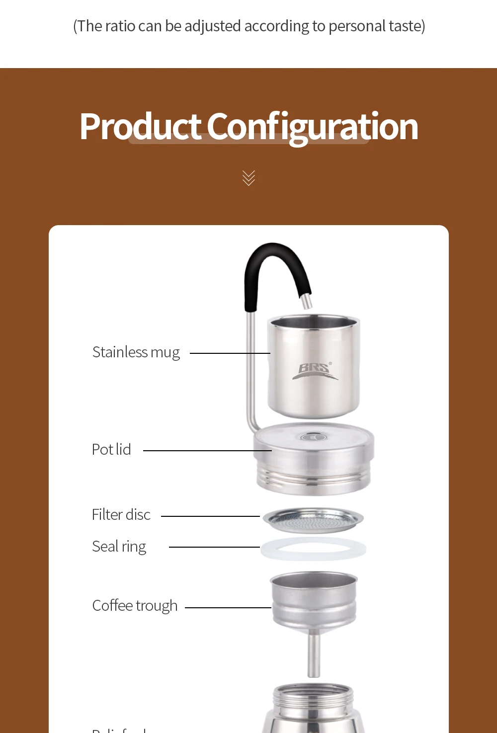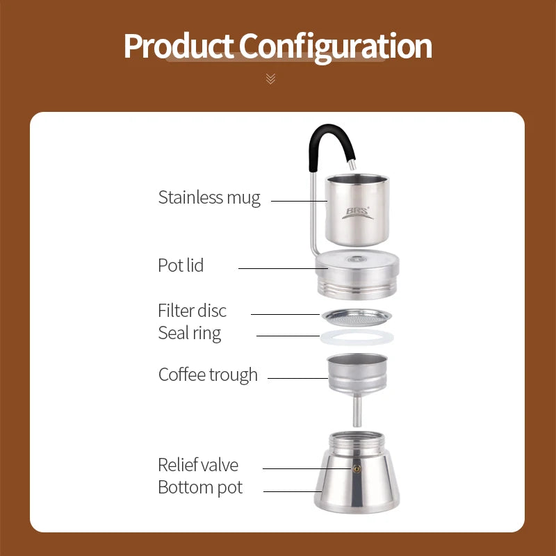 BRS Camping Stovetop Coffee Distiller Outdoor Brewed Coffee Grinder Maker Stainless Steel Moka Pot for Picnic Office Home