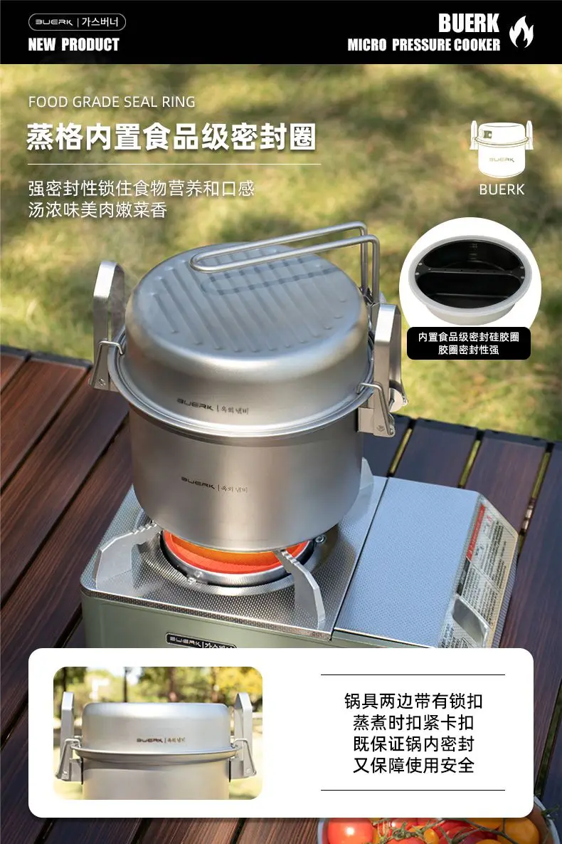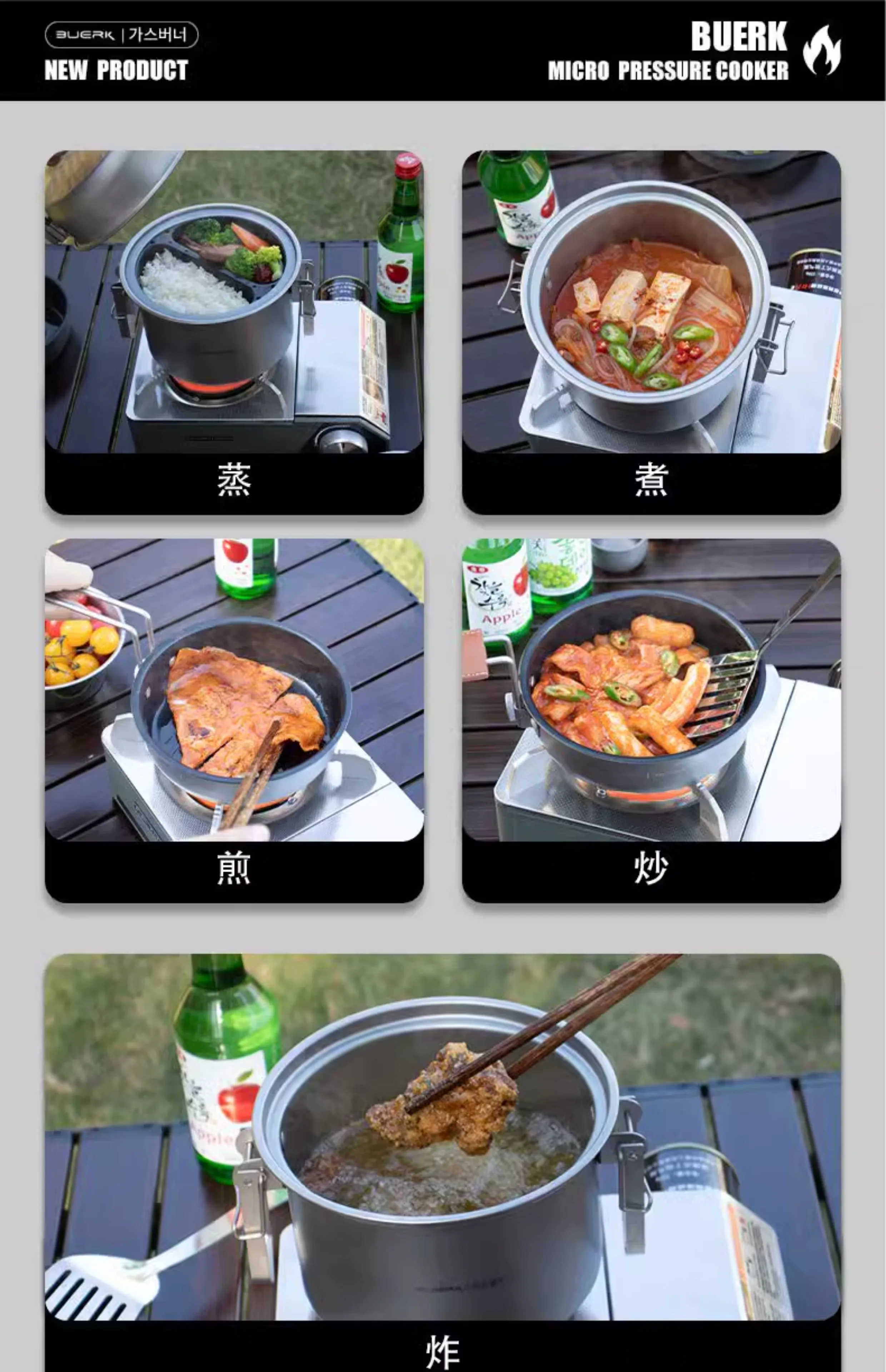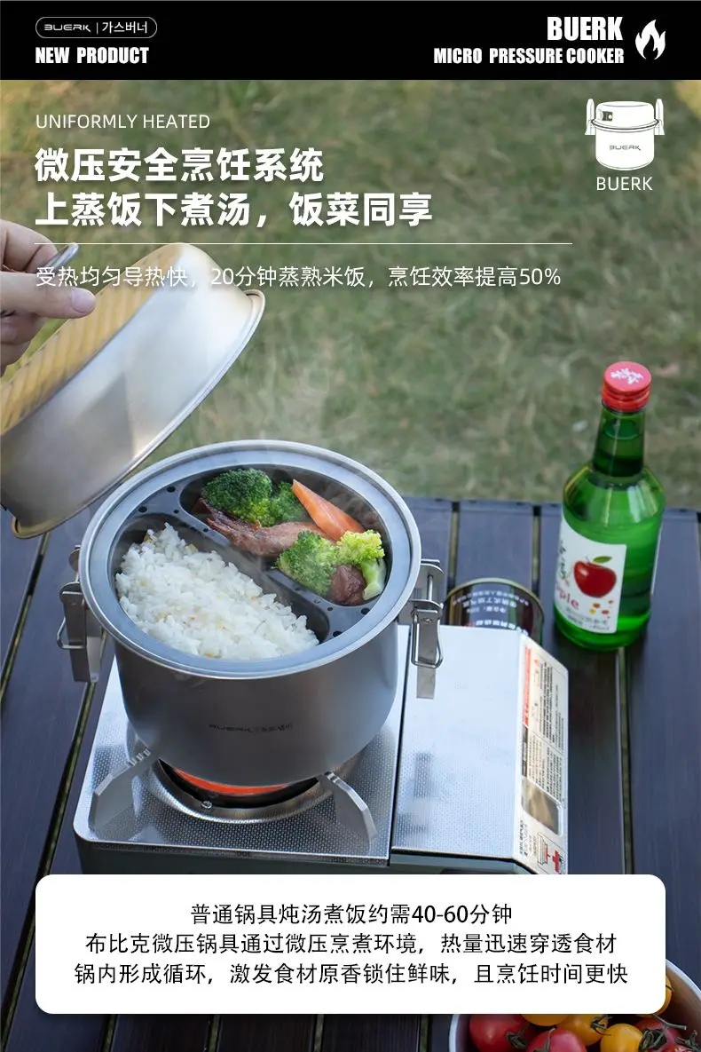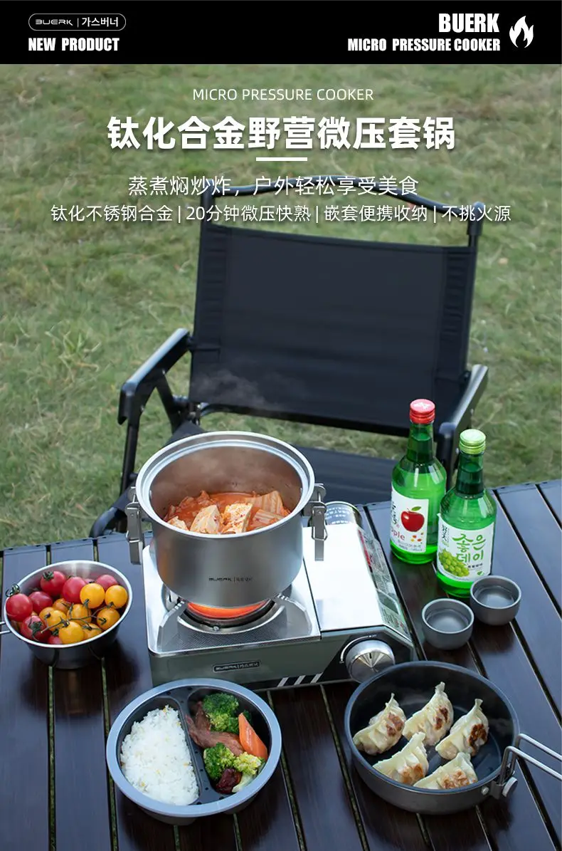 BUERK camping micro-pressure outdoor pots and pans self-driving tour cooking artifact travel universal set cooking pot