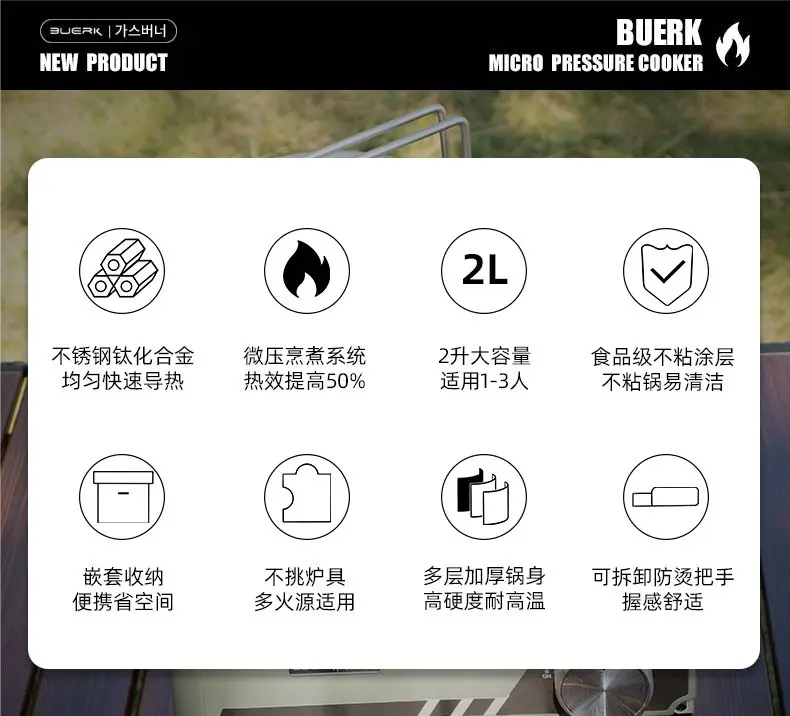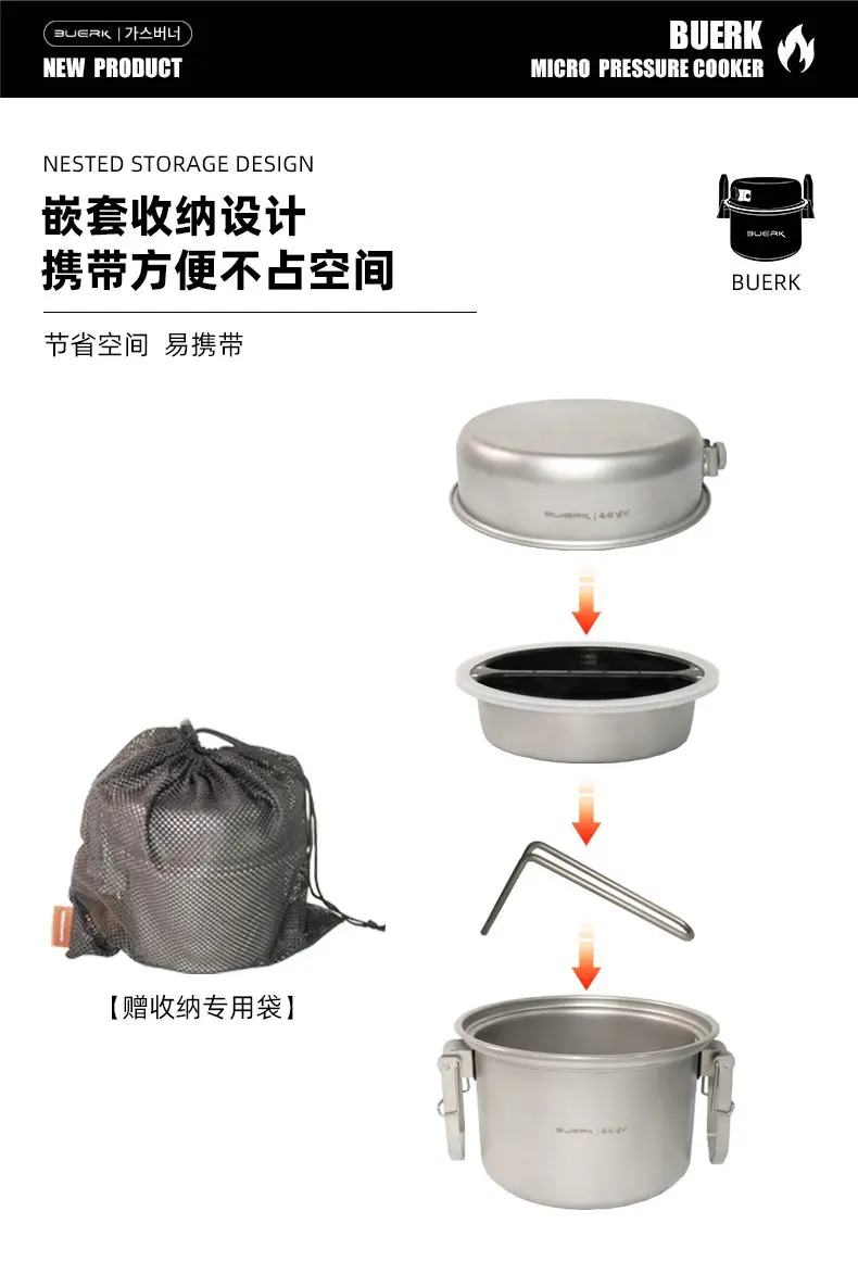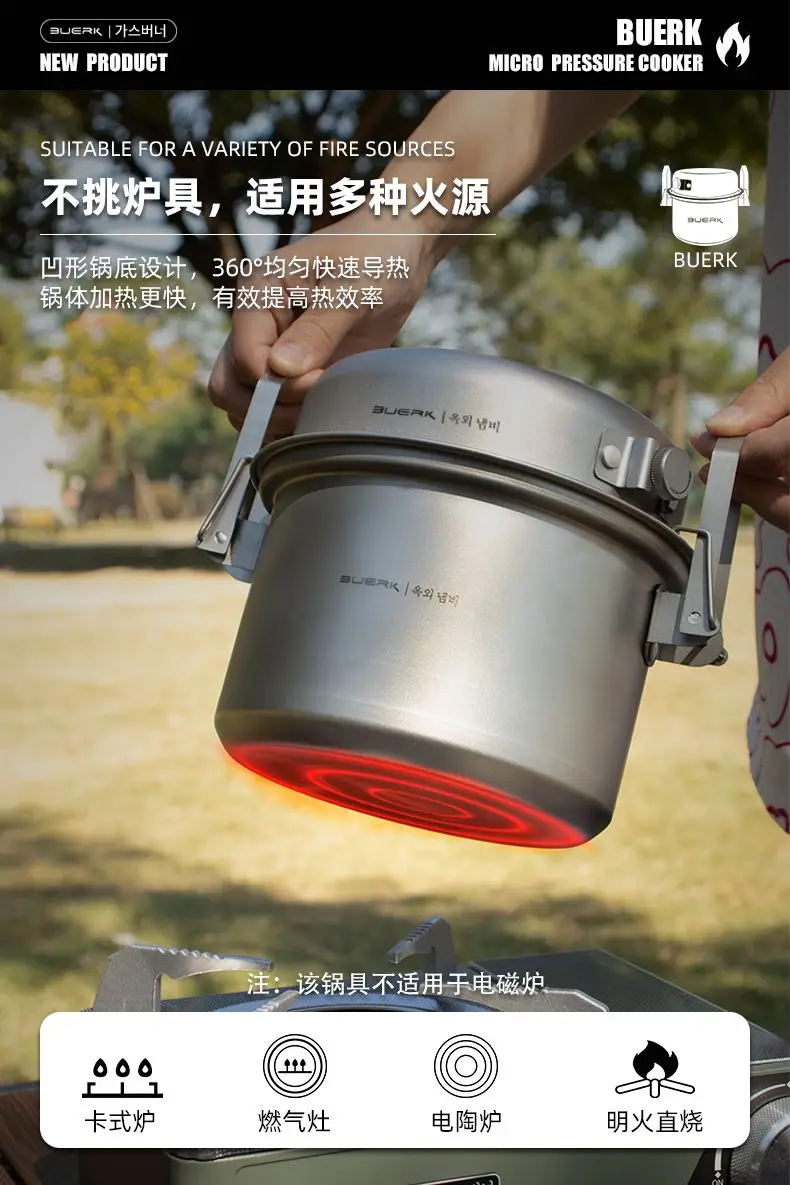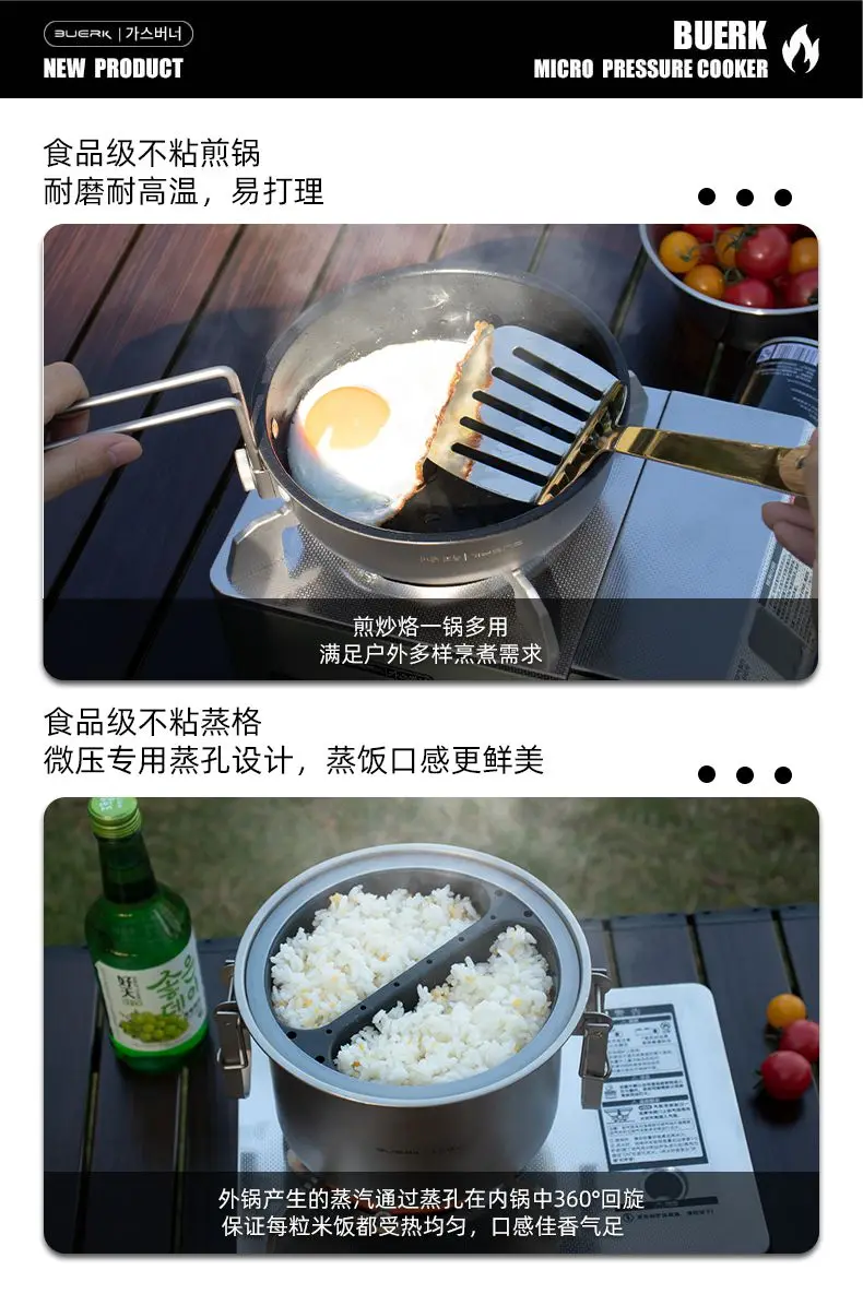 BUERK camping micro-pressure outdoor pots and pans self-driving tour cooking artifact travel universal set cooking pot
