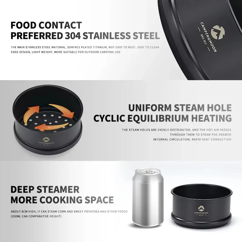 CAMPINGMOON BKS362 Multi-Purpose Cookware Steamer Outdoor Camping Cookware Stainless Steel Pot Food Steamer