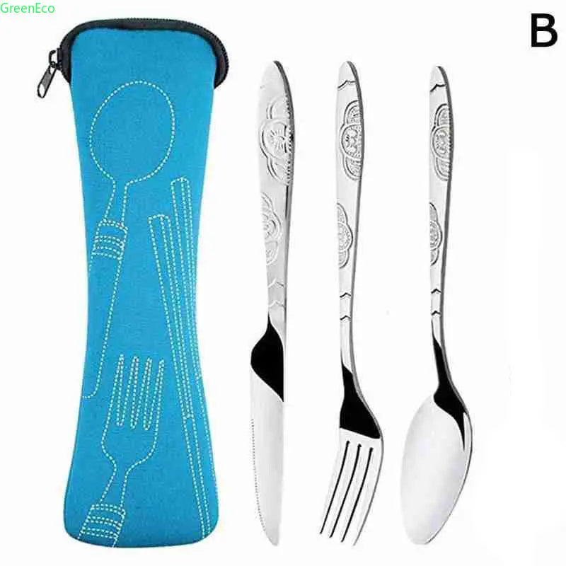 Portable 3 Piece Steel Cutlery Set for Camping and Traveling