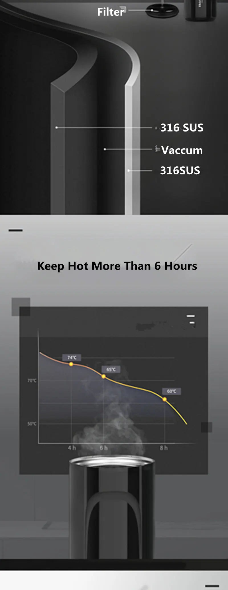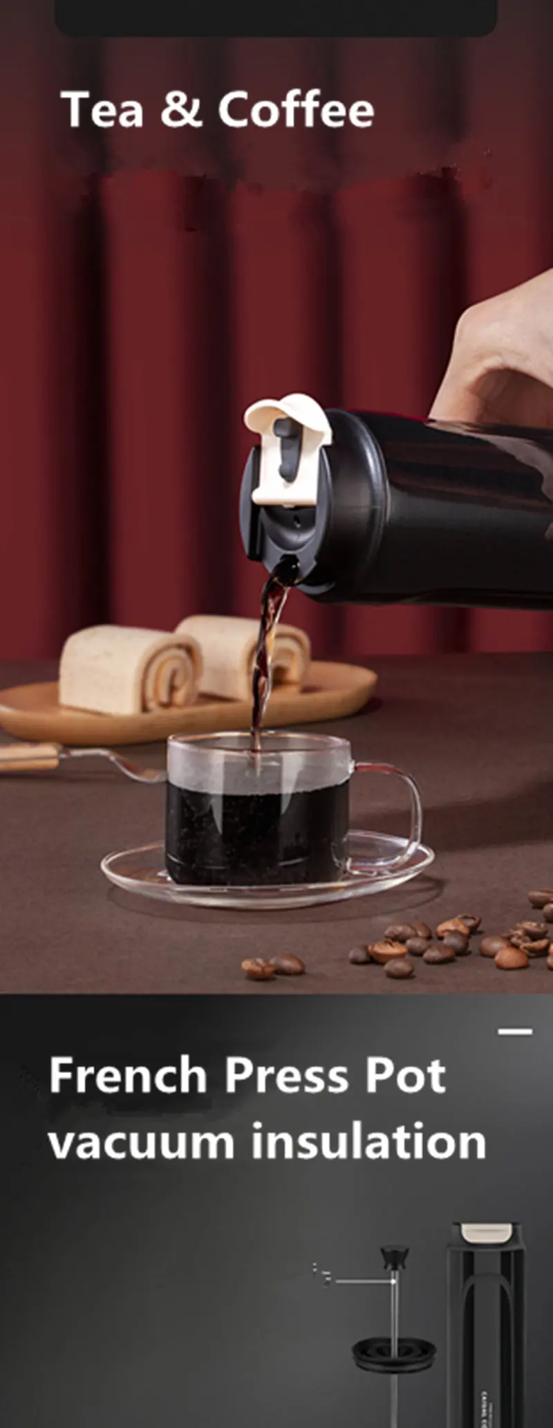 Portable French Press Coffee Maker 316 Stainless Steel Insulated Small French Press Pot For Camping Travel Cup Leakproof 470ML