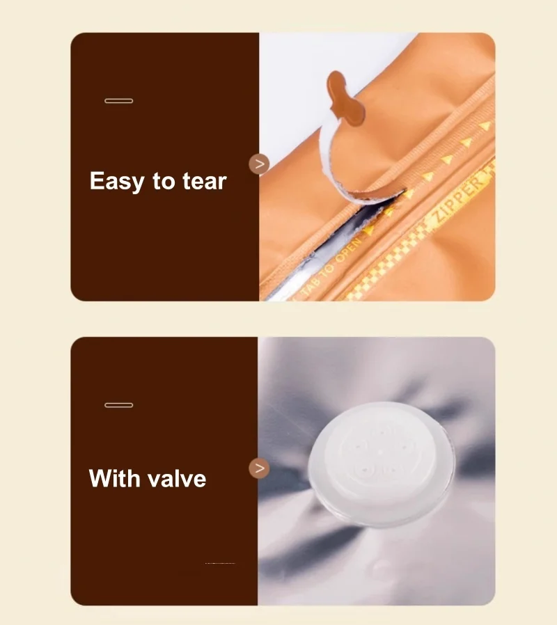 Packaging coffee beans, tea, dried fruit, snack foods, nuts, grains,etc..