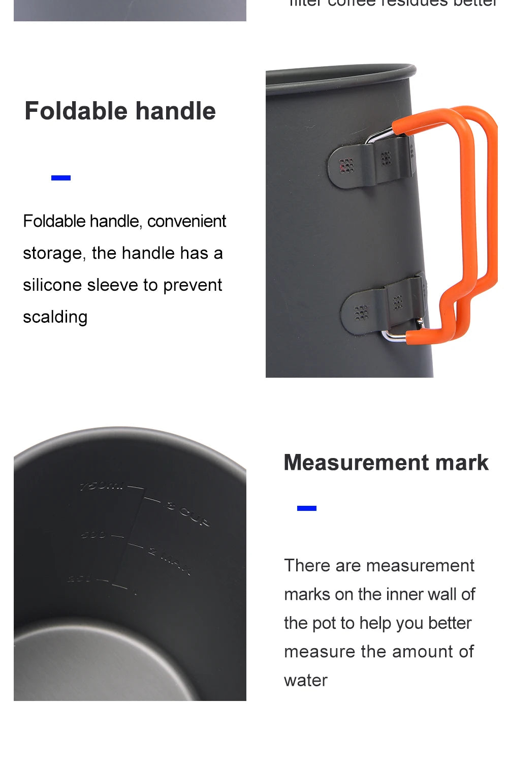 Widesea Camping Coffee Pot with French Press Outdoor Cup Mug Cookware for Hiking Trekking